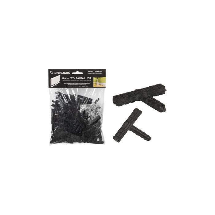 A bucha T Santa Luzia é ideal para ancoragem inicial dos rodapés, guarnições, rodameiose rodatétos em ambientes internos.