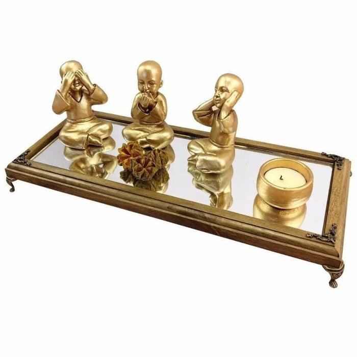 Buda Cego Surdo e Mudo - Aparador Madeira Espelho Metal