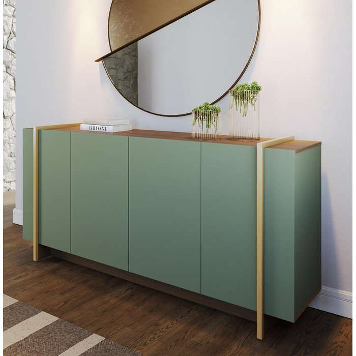 Buffet 04 Portas Detalhe Metálico Copacabana Hortelã/amêndoa/ouro - Colibri