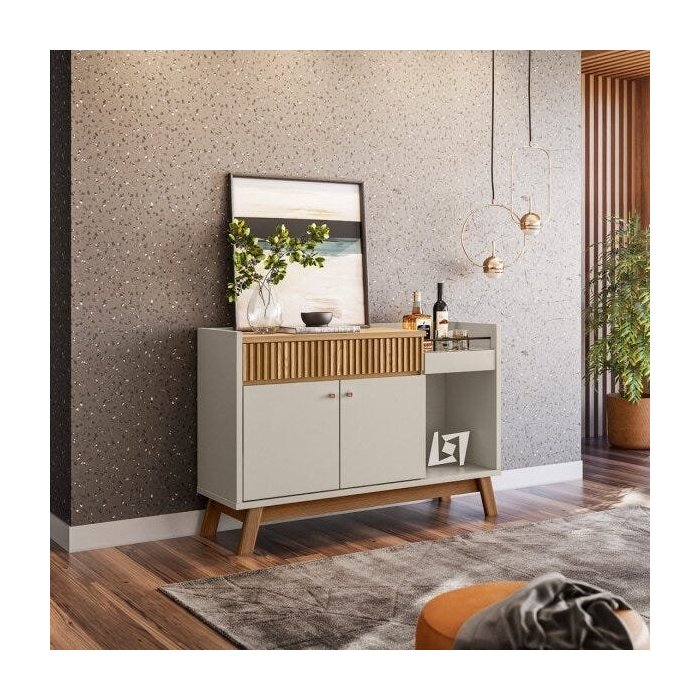 Buffet 133cm 2 Portas 1 Gaveta 1 Nicho Lucca Carvalho/Off White