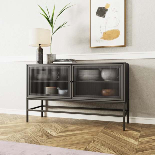 Buffet 2 Portas de Vidro Canelado Aço Euforia Yescasa Preto