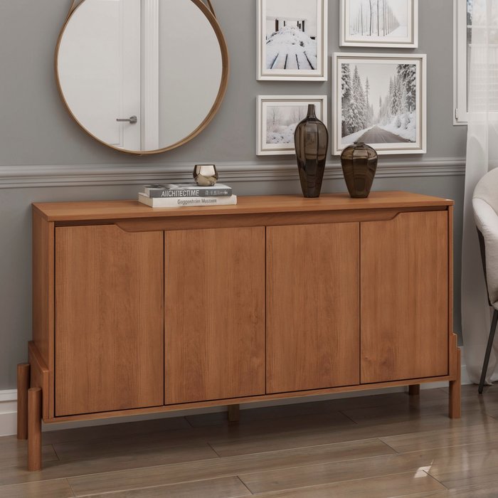 Buffet Aparador 4 Portas com Pés em Madeira Áurea:cinamomo cinamomo