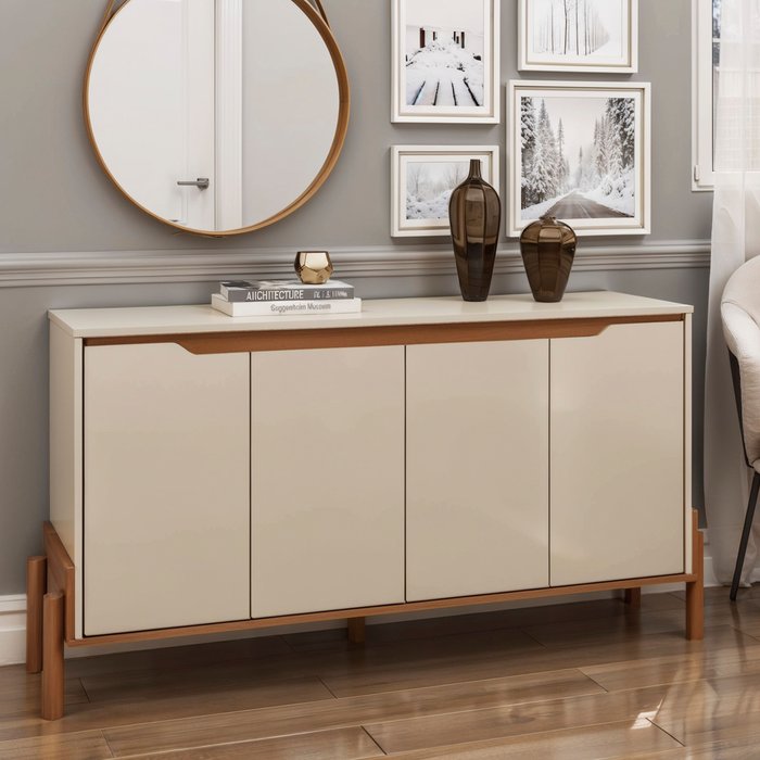 Buffet Aparador 4 Portas com Pés em Madeira Áurea:off White/cinamomo
