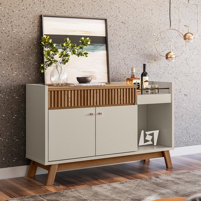 Colocá-lo na sala de jantar, o mais ideal é utilizá-lo como apoio e, também, armazenagem de louças e pratos. Além disso, também será ideal para colocar bebidas que não forem colocados sobre a mesa durante uma refeição, ficando dispostos caso sua utilização seja necessária posteriormente.