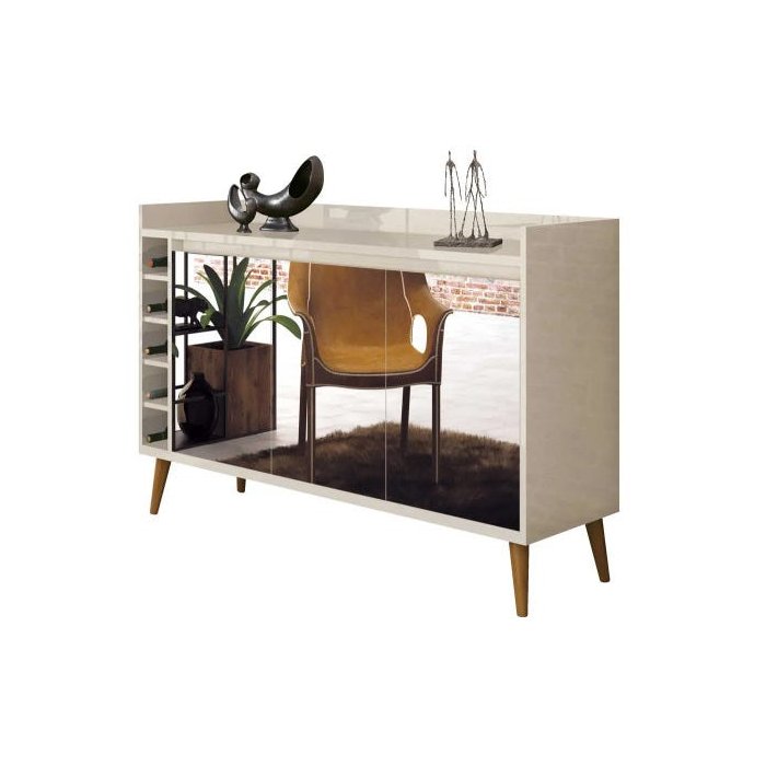 Buffet Aparador com Adega Retrô Wine com Espelho Off White Off White