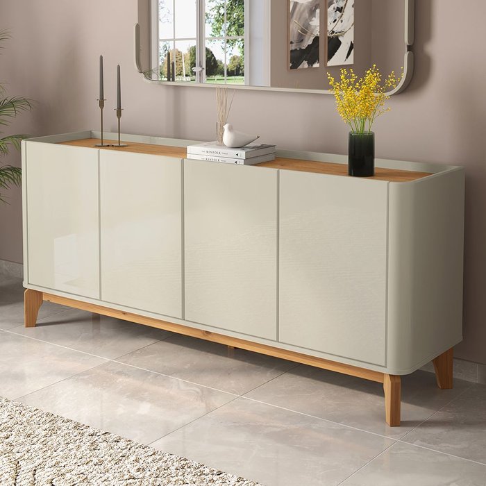 Um móvel funcional que redefine o estilo e a personalidade de qualquer ambiente. Com cantos arredondados e design versátil, este buffet acrescenta um toque de suavidade, elegância e praticidade ao espaço.