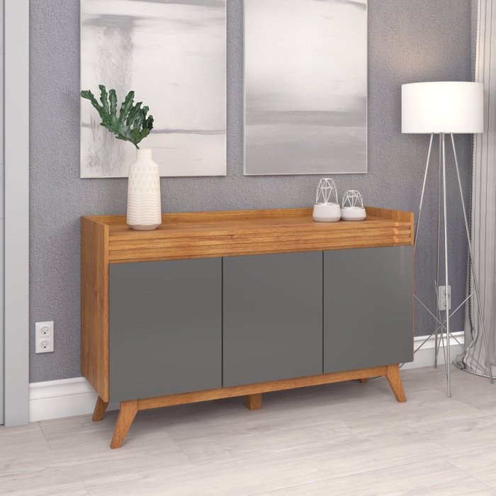 Buffet Aparador para Sala de Jantar 133cm Espanha Mel/Cinza