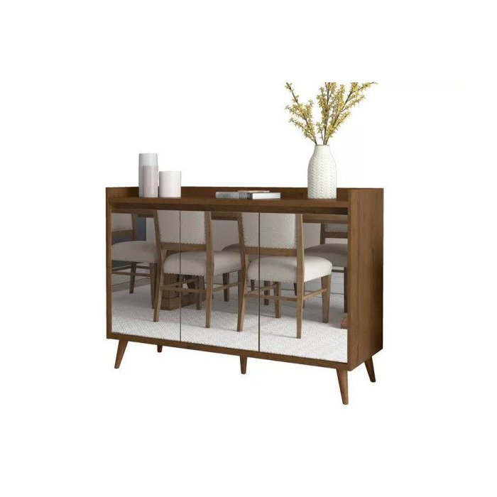Buffet Aparador Retrô com Espelho Delux 3 Portas Malbec
