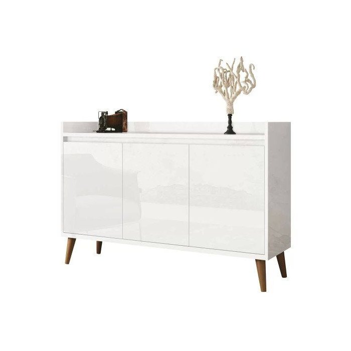Buffet Aparador Retrô Delux 3 Portas Branco Gloss