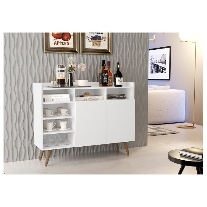 Buffet Aparador Retro Life Pés de Madeira - Branco - Móveis Germai