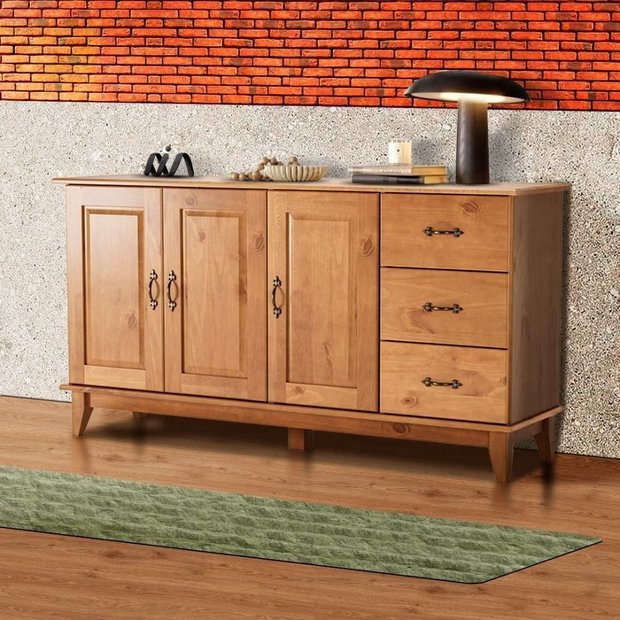 Buffet Aparador Rústico Madeira Maciça 3 Portas 3 Gavetas Bella Shop Jm - Carvalho Carvalho