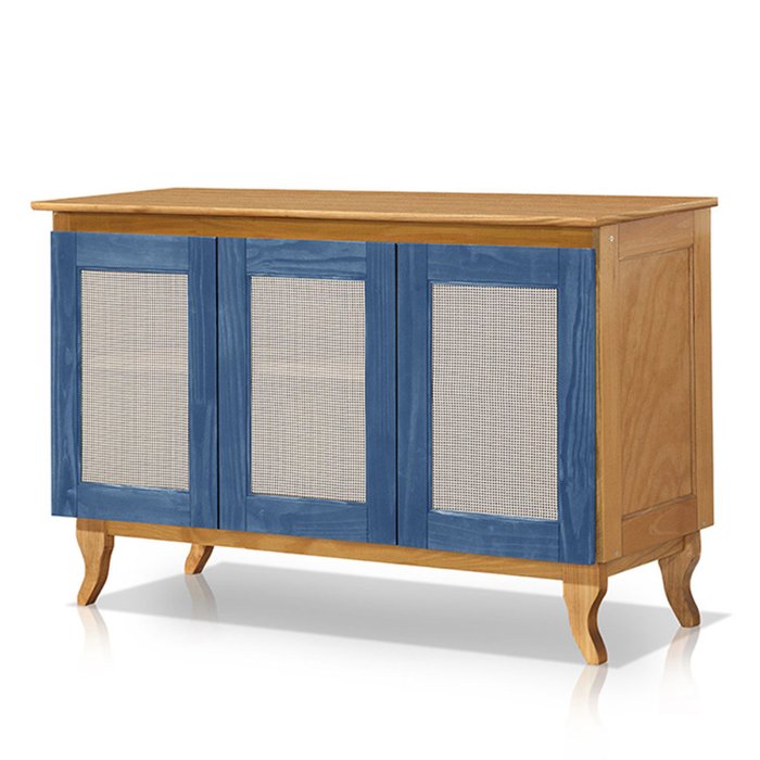 Buffet Aparador Tela 3 Portas Madeira Maciça Deltan Imbuia com Azul Lavado - Atraente Móveis