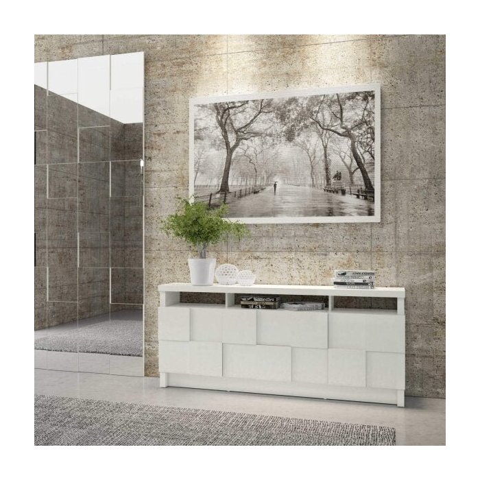 Buffet Balcão Quadriculado 3D 2 Portas 2 Gavetas 178cm Off White