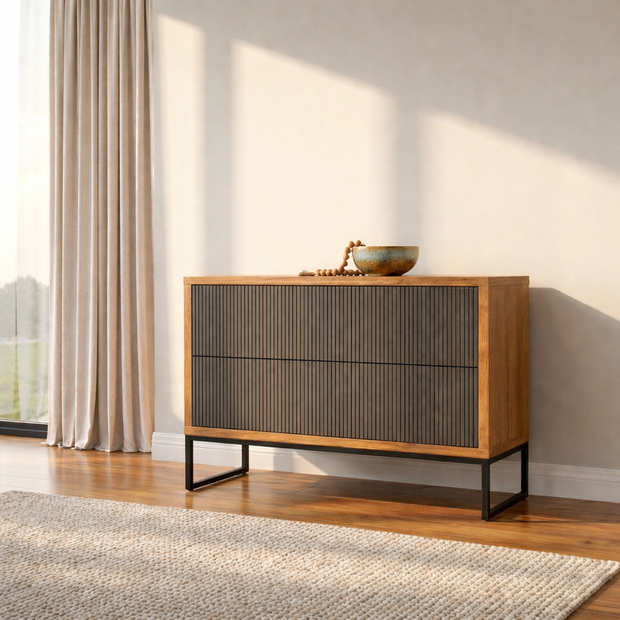 Buffet Charlote Pés Metalicos 2 Gavetas Espresso Móveis Cinamomo/Grafite