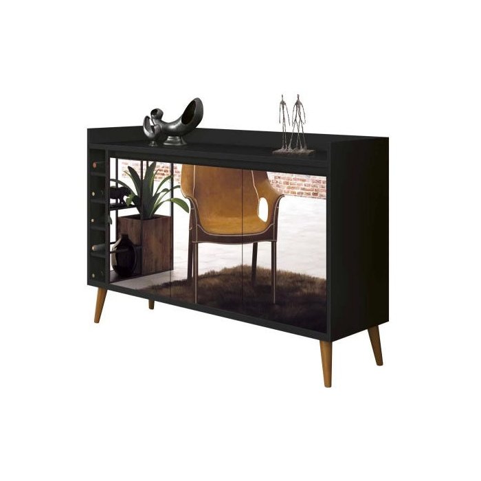 Buffet com Adega Estilo com Espelho MóveisAqui Preto