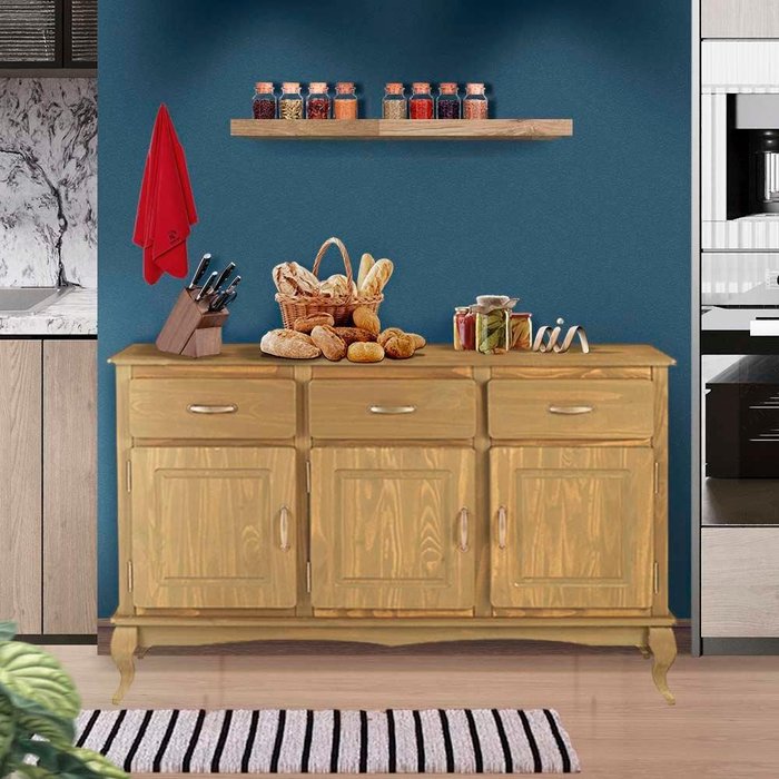 Buffet Cozinha Rústica Madeira Maciça 3 Portas 3 Gavetas Mel Jm Móveis