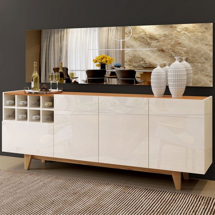 Buffet Duna com Adega 3 Portas 1 Gaveta Off White / Naturalle