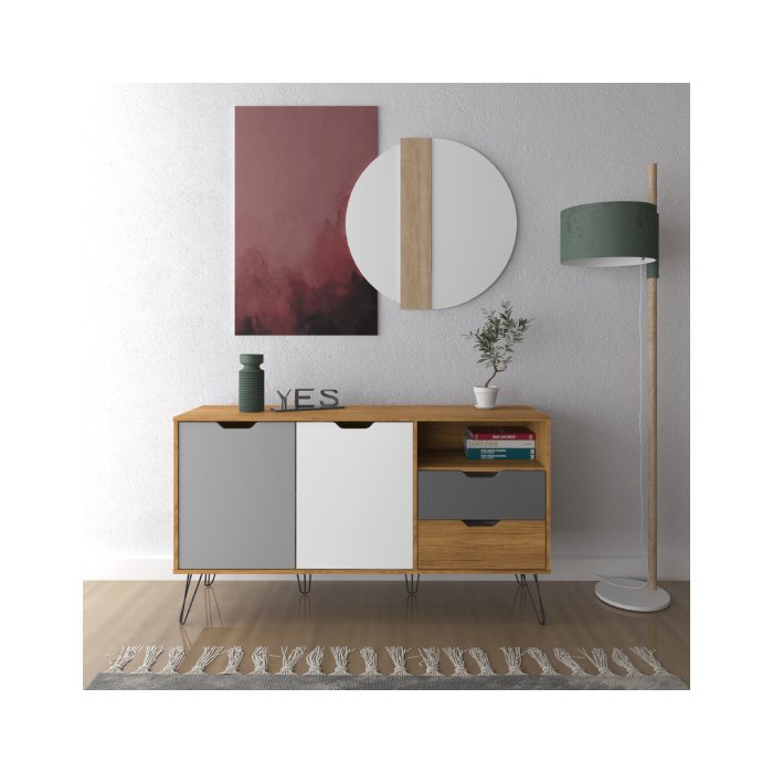 Buffet Estocolmo - Carvalho/ Branco/ Grafite/ Prata - Palladium Decor
