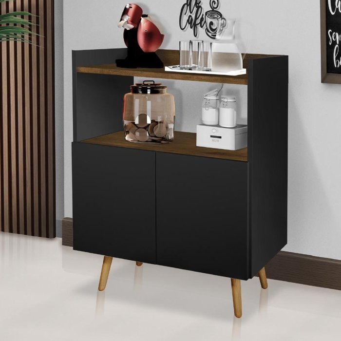 Buffet J A Multiuso Belly 2 portas Preto / Madeirado