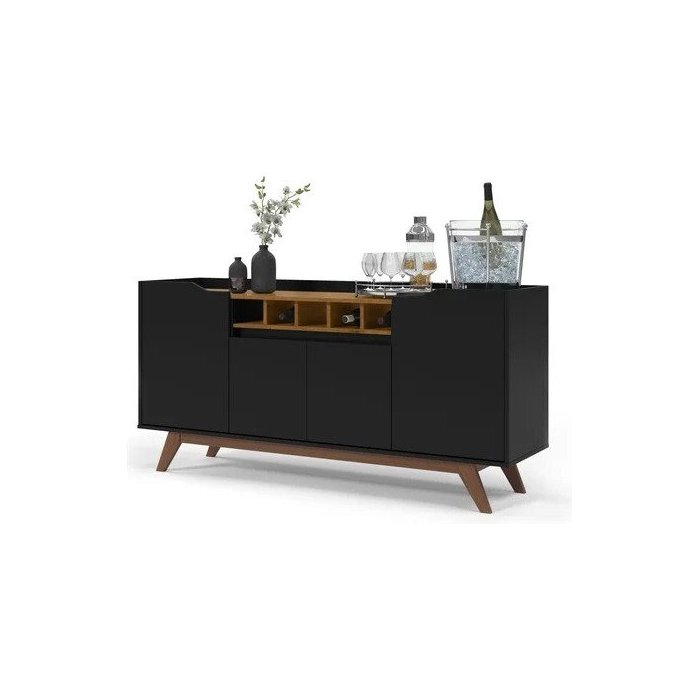 Buffet Luxo 4 Portas com Adega-nl Moveis - Preto / Freijó