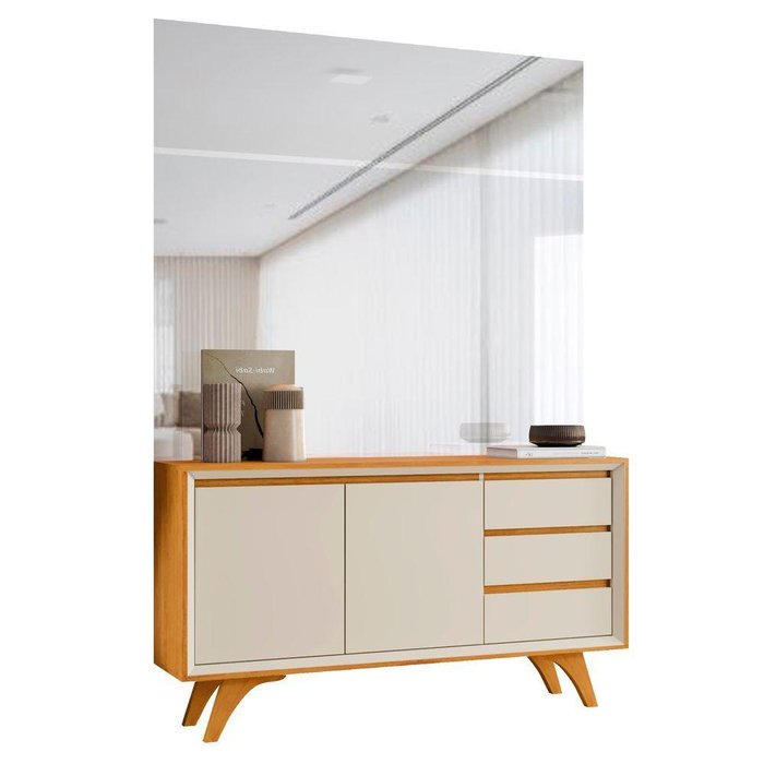 Buffet Piazza 2 Portas Pés Madeira Maciça - Mavaular Naturalle/off White