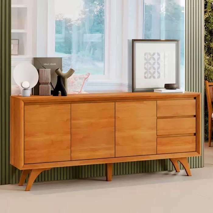 Buffet Piazza 3 Portas Pés de Madeira Maciça Naturalle - Mavaular