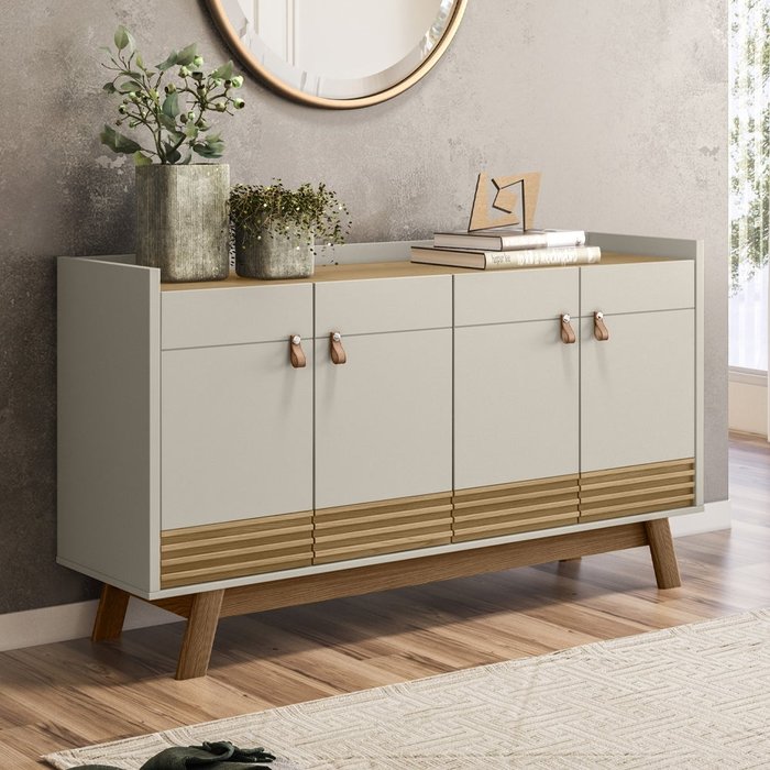 Buffet Retrô 4 Portas Clarinea Carvalho Off-White