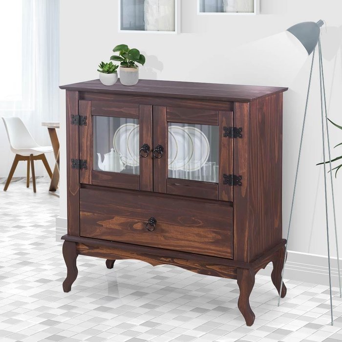 Dimensões do produto: Altura 83,5 cm; Largura 80 cm; Profundidade 37 cm. Itens Inclusos: 1 Aparador Rústico Móveis rústicos garantem elegância para qualquer ambiente, por isso, a Shop JM aposta em seu mais novo lançamento, o aparador para sala, que conta com um design rústico e sofisticado! Por ser muito versátil, pode ser utilizado em sua sala de jantar, sala de estar, corredores, ou onde você preferir. Produzido em madeira maciça, é um aparador robusto e resistente. Conta com duas portas com vidro, perfeitas para guardar aqueles objetos que você mais gosta e deseja expor. Possui também com uma espaçosa gaveta, e ambas têm puxadores em metal. O toque final fica por conta dos pés Luis XV, que são clássicos e garantem sofisticação ao móvel. O melhor de tudo é que esse aparador já vai montado, sendo necessário apenas encaixar os pés. Legal né? Transforme o estilo do seu lar, com esse aparador para sala! Recomendações de Uso, Manutenção e Limpeza: Limpar com flanela ou pano macio seco, não utilizar produtos abrasivos, desengordurantes, álcool ou solvente. Não expor o produto diretamente à luz solar e à umidade. Garantia:3 meses OBS: Foto meramente ilustrativa, decorações não fazem parte do produto. Cor: Marrom | Peso Montado: 73.5 | Profundidade Montado: 37 | Largura Montado: 80 | Altura Montado: 83