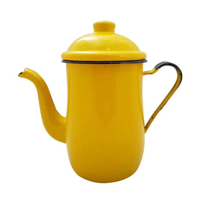 Bule Aço Esmaltado Para Café Chá 1,25 Litros Tradicional Amarelo