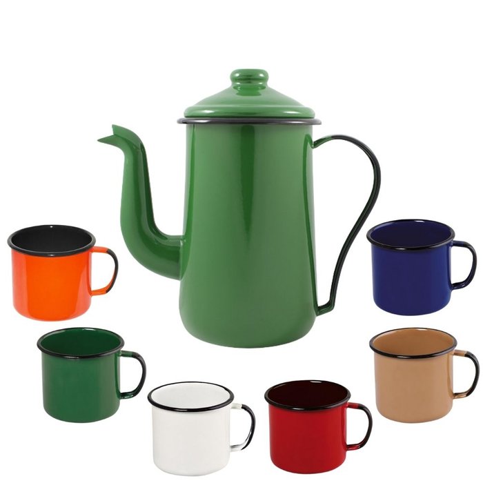Bule Café Esmaltado 1,5l Ágata Verde e Xícaras Sortidas Ewel