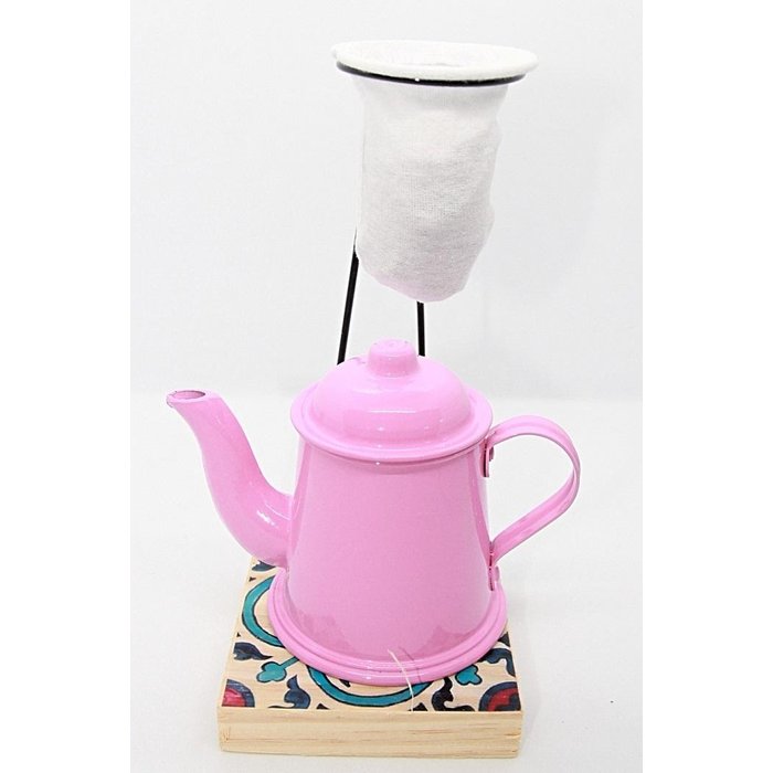 A forma mais charmosa de servir o delicioso café !!! Mini Coador de Café de tecido + Bule Esmaltado Aamrelo 270ml. Ótima opção de presente!