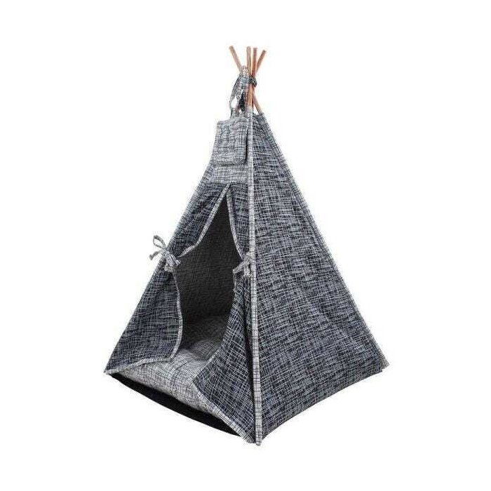 Esta linda cabana que lembra as tribos indígenas é perfeita para a soneca dos nossos mascotes! As paredes, em tecido jacquard, são sustentadas por 4 varetas de madeira, proporcionando um acabamento bonito e de muito bom gosto. Delicado cordão com pingente enfeitam ainda mais a cabana.