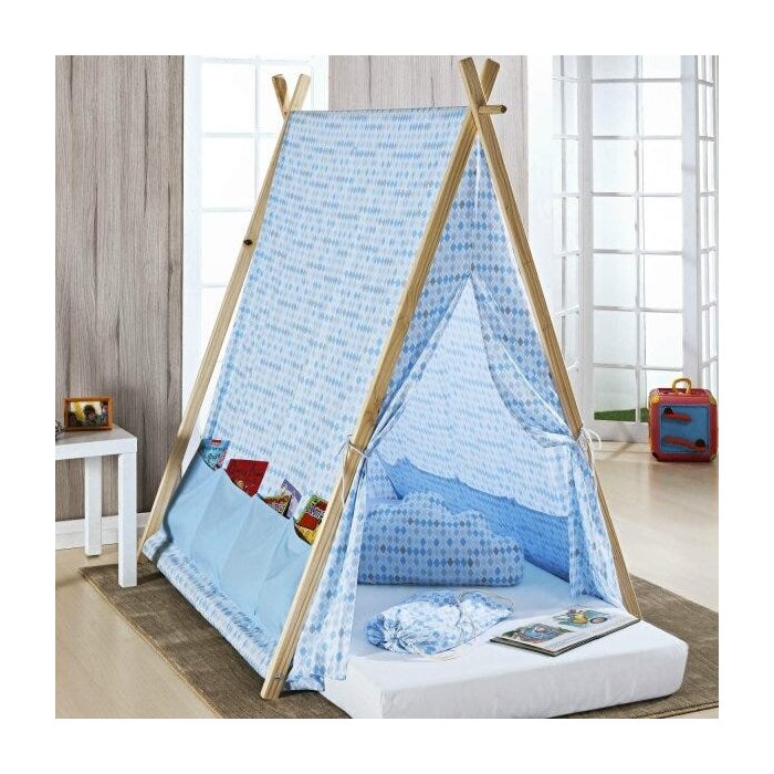 Cabana Infantil Tecido e Madeira Xodó Bernadete Casa Azul Claro