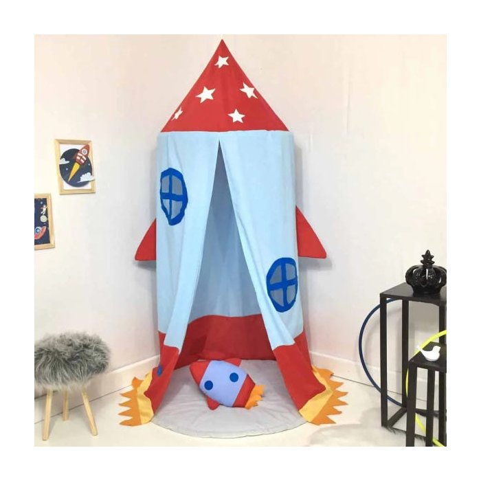 Cabana Infantil Tenda Dossel 04 peças com Tapete - Foguete Azul