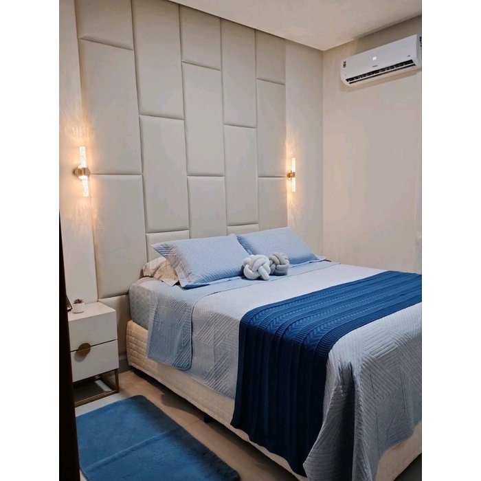 Fabricada pela CasaBella Cabeceiras, a cabeceira é feita de materiais de alta qualidade, como suede ou corino, garantindo durabilidade e fácil manutenção.