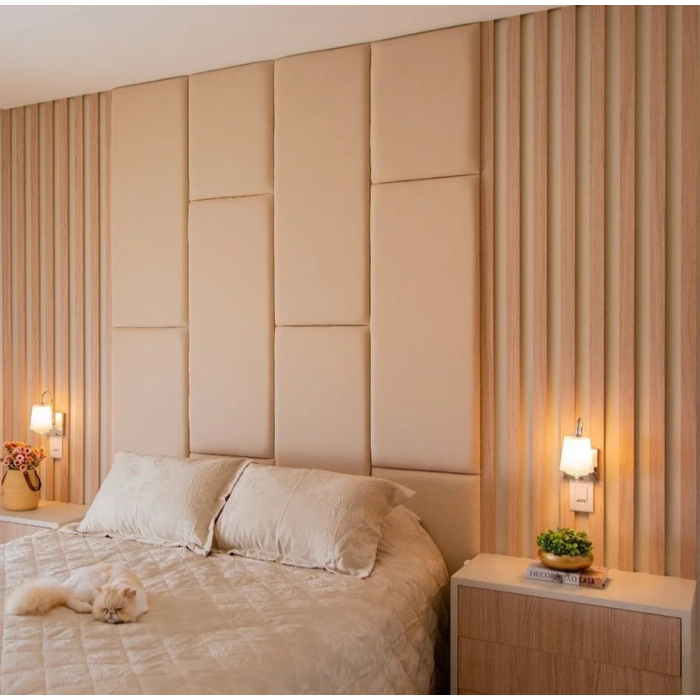 Cabeceira Autocolante Modelo Dominó Medindo 2,50 de Altura por 1,60 de Largura Suede Marfim