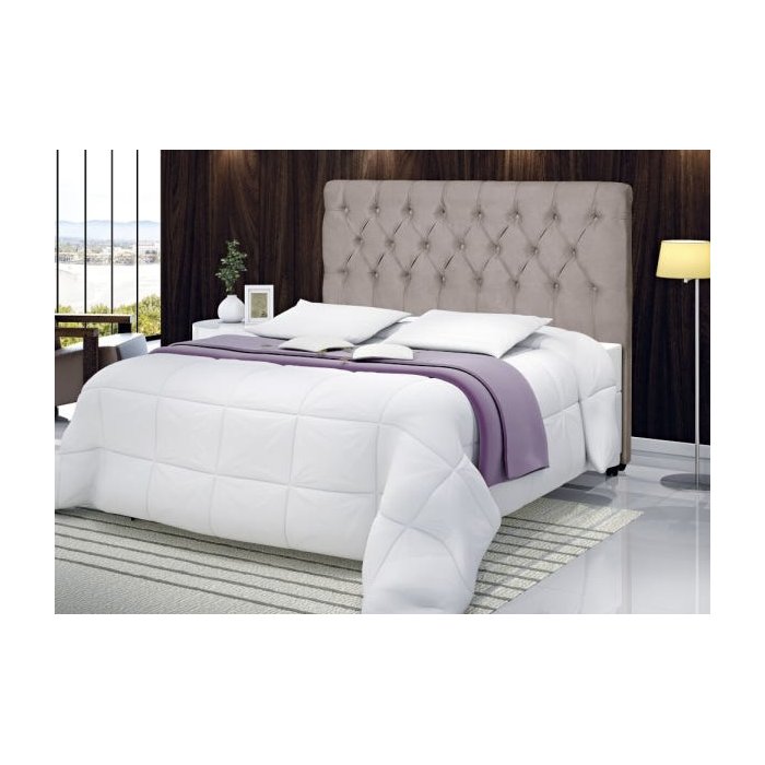 Ela é feita para cama box de casal 138 cm, além de possuir revestimento em tecido de pena e frame para fixação.