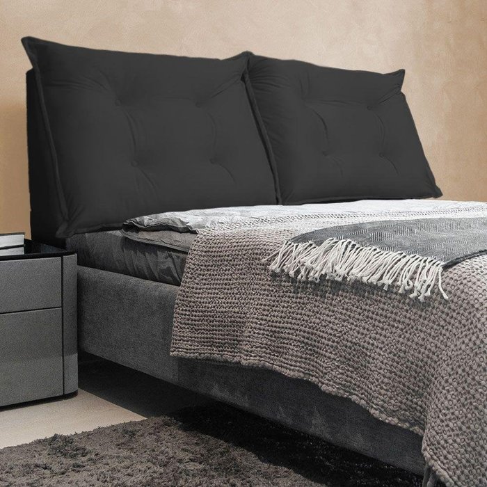 Cabeceira Bau Cama Box King 1,95 Estofada Preto Preto