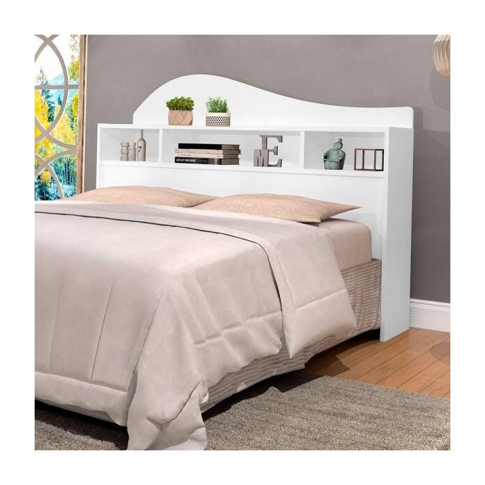Cabeceira Box de Casal com prateleira e nichos Irlanda Branco Branco