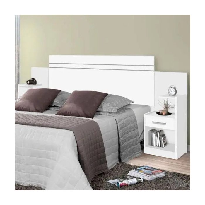 Cabeceira Box de casal extensivel 1,40 e 1,60 com mesa de cabeceira Moana Branco Branco