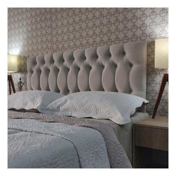 Cabeceira Cama Box Casal Capitone 1896 Suede Liso Bege 140x60 RBL