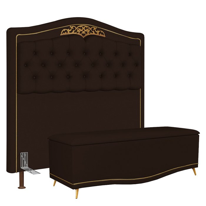 Cabeceira Cama Box Casal King 195cm Com Calçadeira Baú Imperial J02 Corano Marrom Escuro -