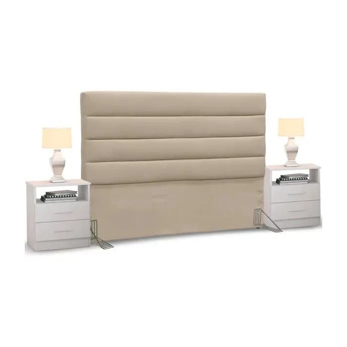 Cabeceira Cama Box Casal Queen 160cm Greta Suede Bege e 2 Mesas de Cabeceira Branco - Mpozenato