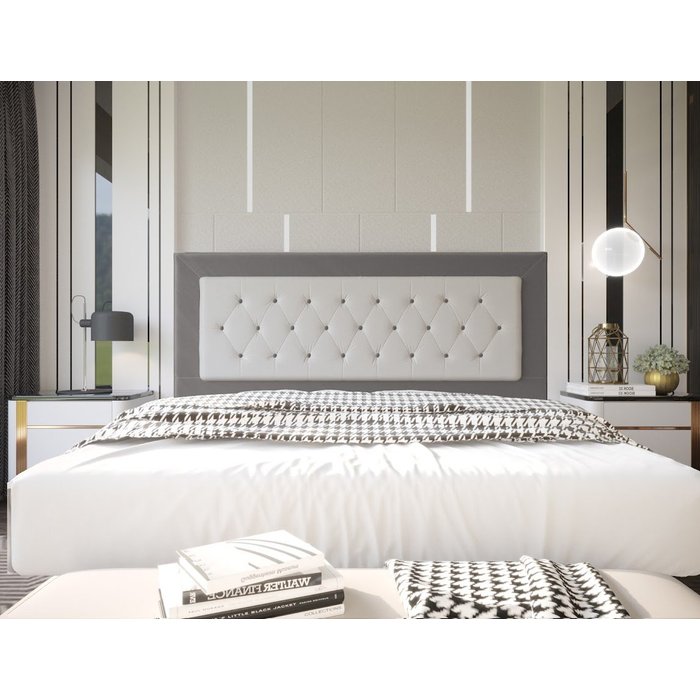 Cabeceira Cama Box King Estofada Cuba 195 Cm Suede Cinza Branco