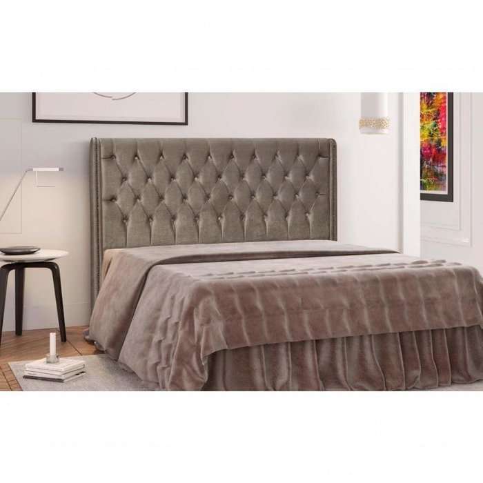 Cabeceira Cama Box Estofada King Gênova Para Quarto Em Veludo Bege Claro - Larbelle