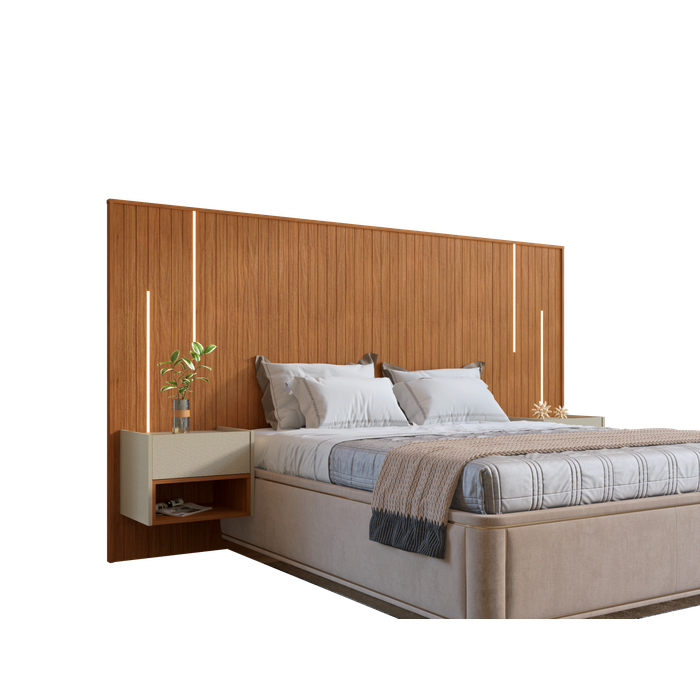 Cabeceira Cama Casal King Florença com Mesa de Cabeceira e Led – Cedro