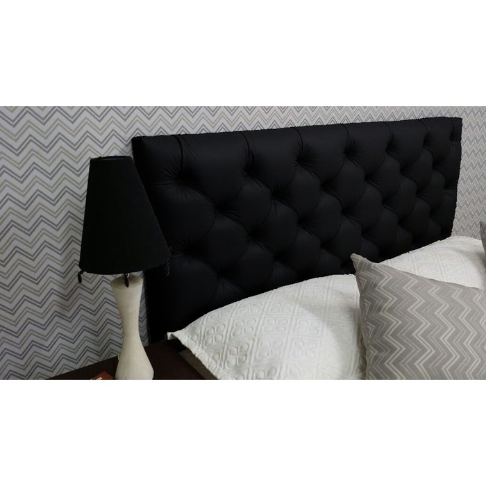 Cabeceira Casal 138 - Bello Box - Estilo Capitonê Tecido Sintético Preto Sem Strass Preto
