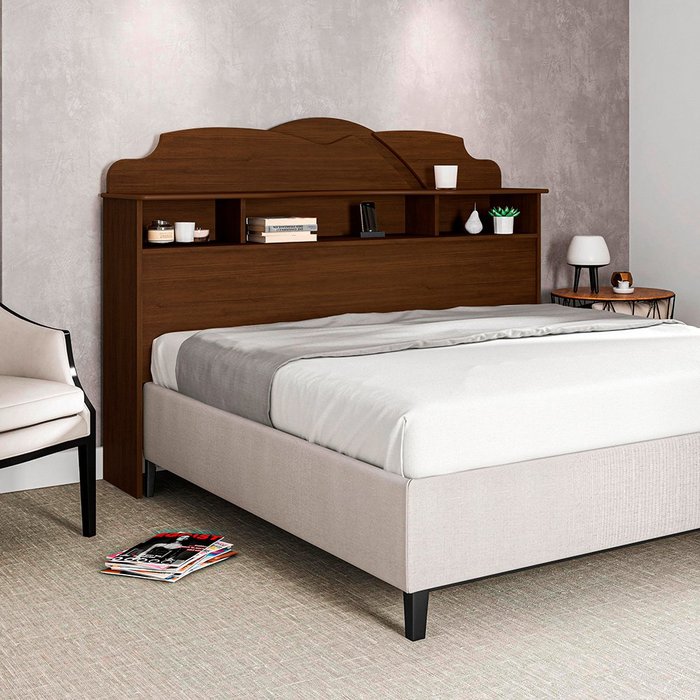 Cabeceira Casal Cama Box 1,40m com Nicho Cristal - Imbuia