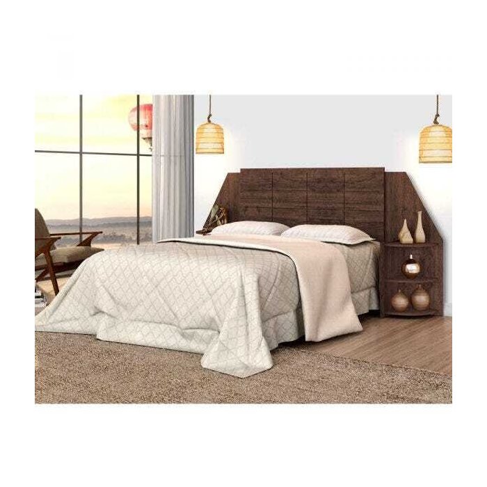 Cabeceira Casal com 2 Mesas de Apoio Bréscia Conquista Móveis Café Wood