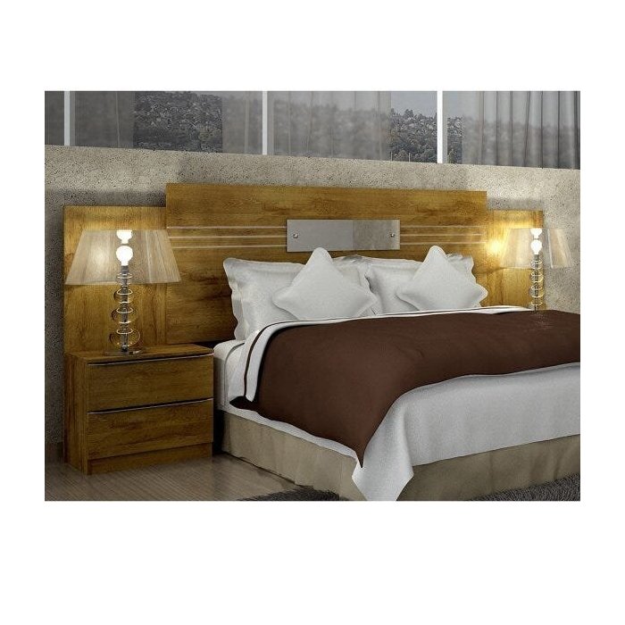 Cabeceira Casal com 2 Mesas de Apoio Plenus Freijó Dourado